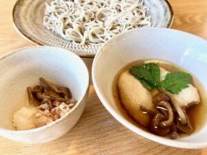 なめこの用意ができました。なめこそば、なめこのそばがきはいかがですか?